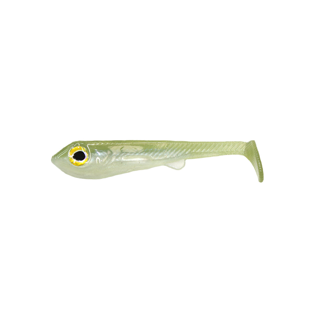 The Ignite shad swimbait is a soft plastic swimbait. Hand poured to capture the illusion you're looking for to get bit. It has a slight more side to side body movement than the frenzy shad. With that paddle tail kick.