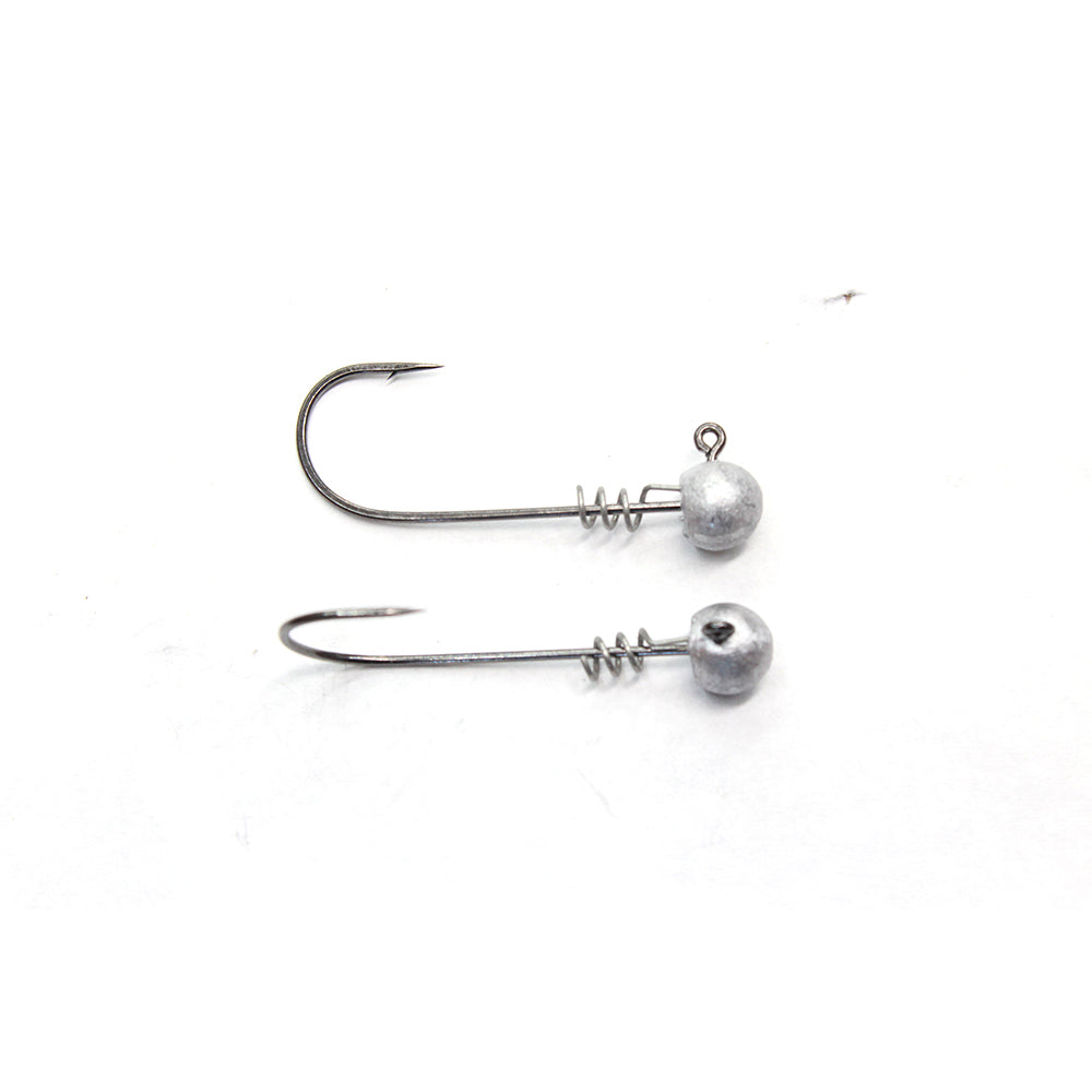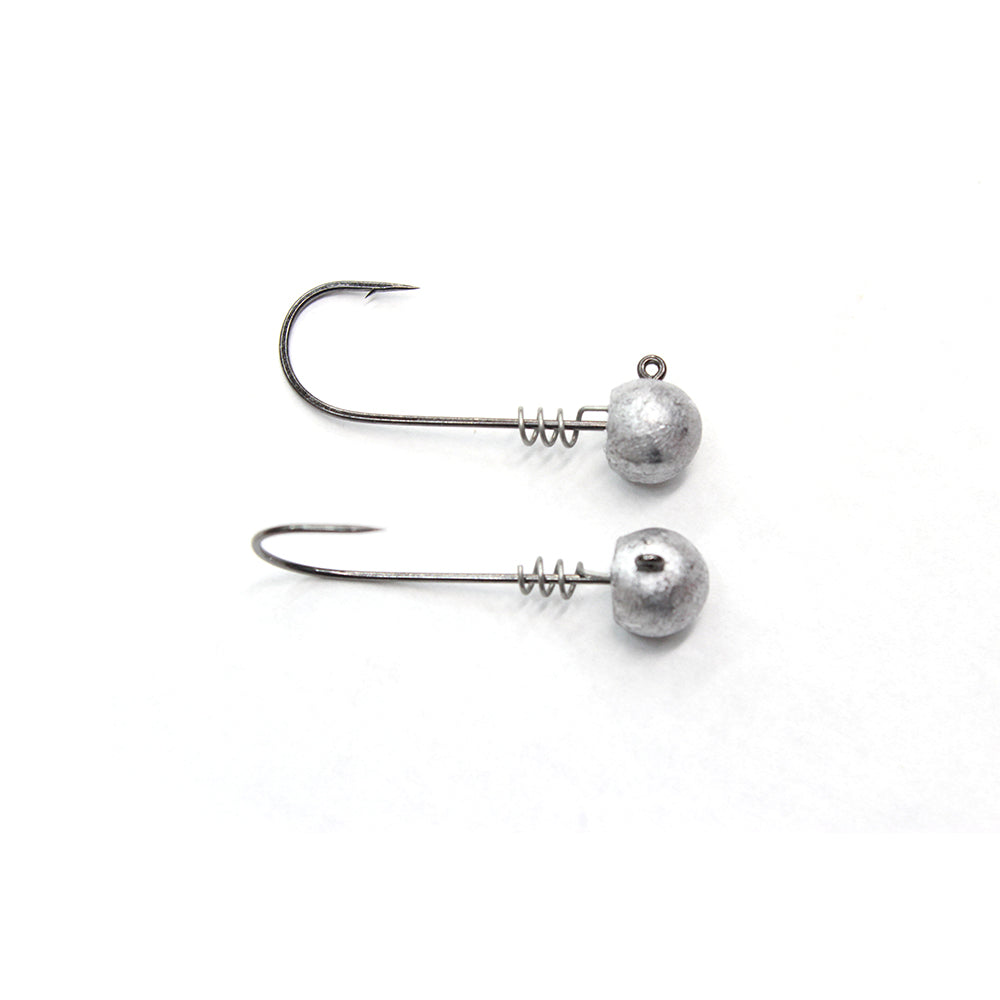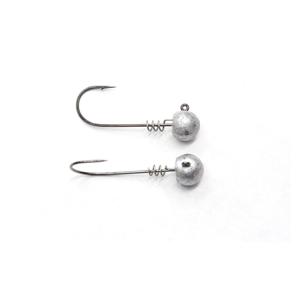 The Baller Head is built on a 90 degree Owner Super Needle Point light wire hook with a built in screw lock. Designed for smaller swimbaits, umbrella rigs and Damiki rigging. The head design is ideal for providing streamlined bait presentation.